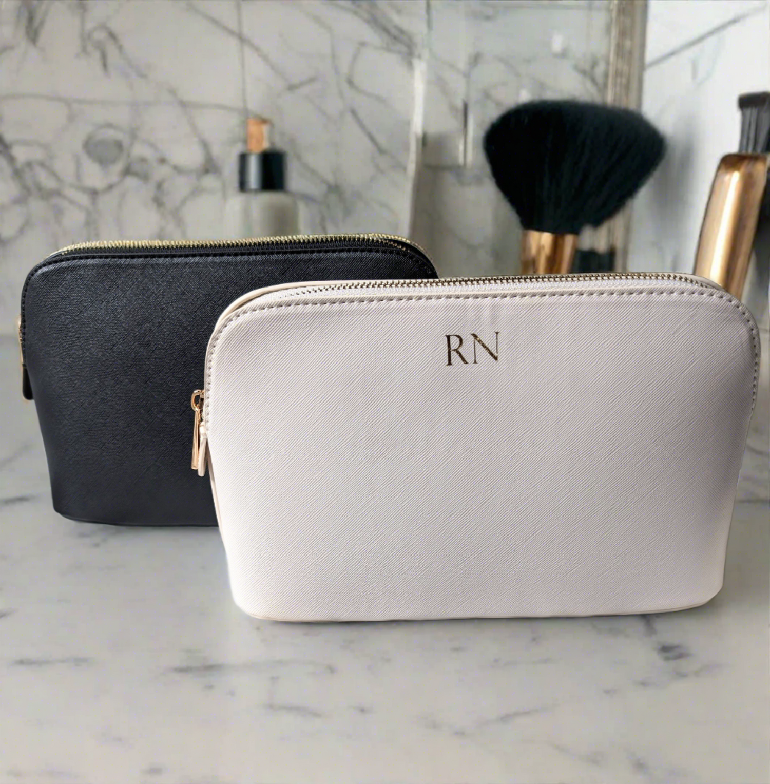 Whether you're on the go and need a chic makeup bag, stepping out for a night on the town and need a small clutch or adding a touch of sophistication to your keys, our luxe look leatherette collection is sure to elevate your style. Our range of makeup cases, clutches and keyrings in Black, Oyster and Pink can be monogramed adding and extra touch of luxury