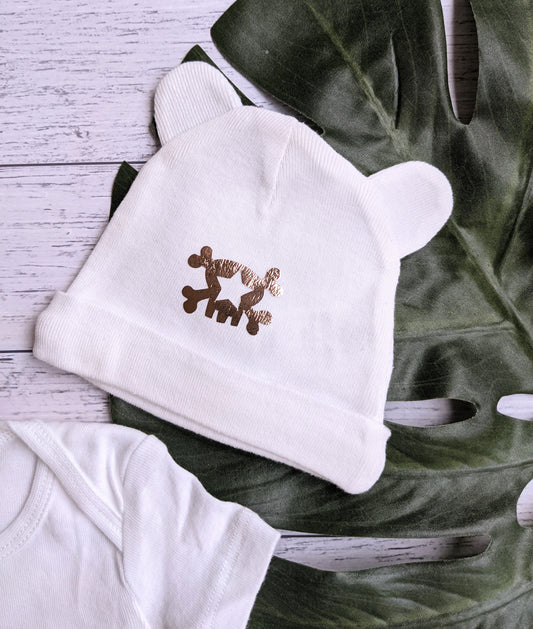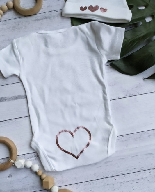 Newborn Outfit, I'm Here Birth Announcement Onesie Bodysuit and Baby Hat