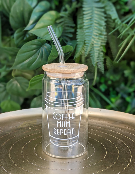 Coffee Mum Repeat Reusable Glass Can Tumbler Cup