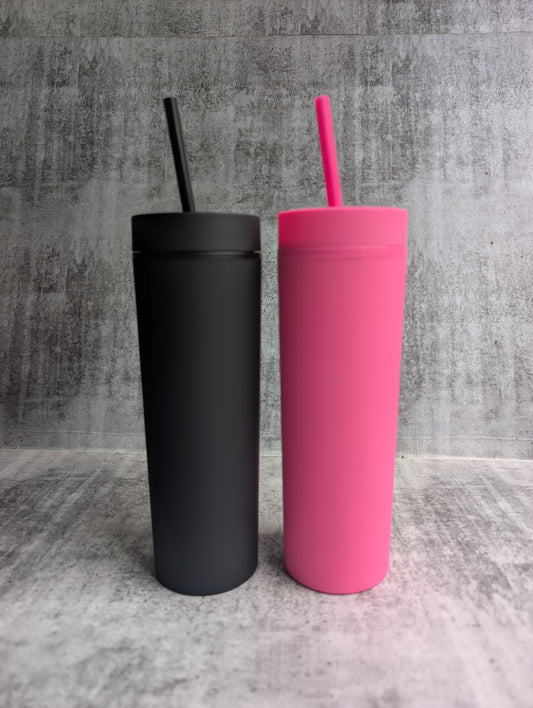 Hot Pink Personalised Drink Bottle Tumbler with straw