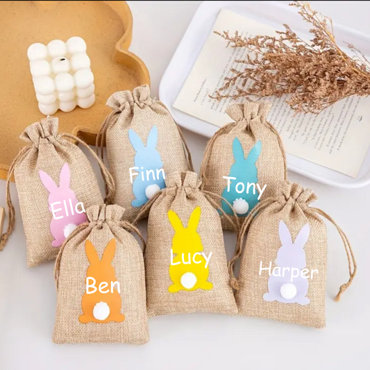 Personalised Easter Bunny Small Hessian Easter Egg Goodie Bags - Set of 6