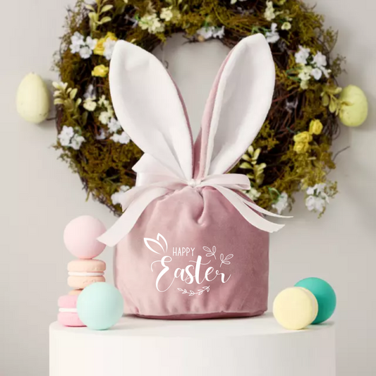 Personalised Easter Bunny Pink Velvet Bag | Pouch | Easter Gift | Egg Hunt
