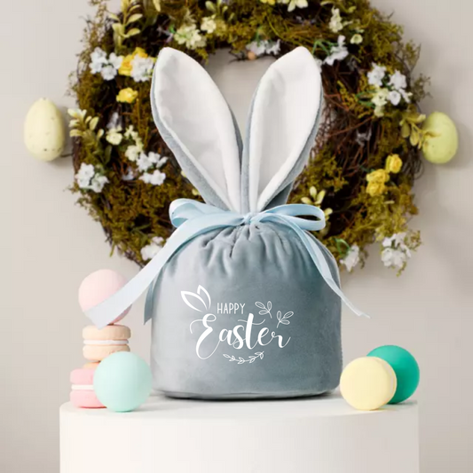 Personalised Easter Bunny Blue Velvet Bag | Pouch | Easter Gift | Egg Hunt