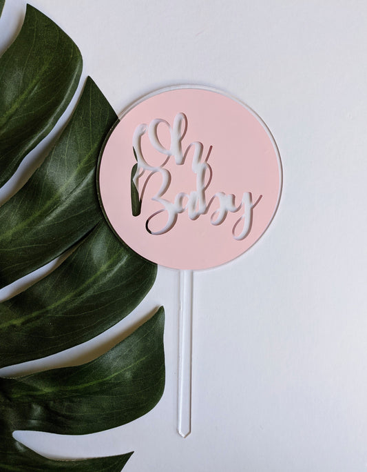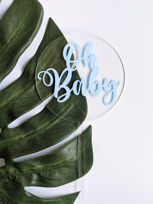 Oh Baby Baby Shower Round Acrylic Cake Topper