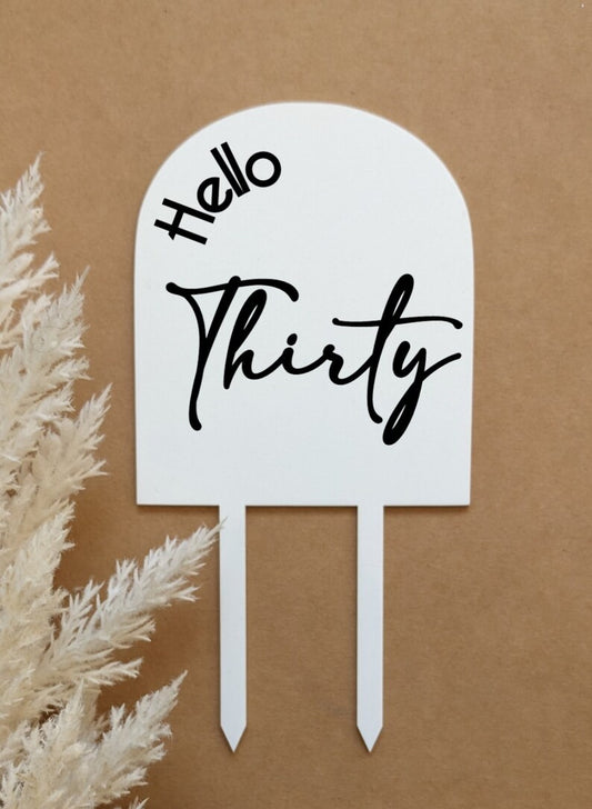 Hello Thirty Birthday Acrylic Arch Cake Topper