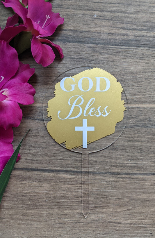 God Bless Religious Cake Topper