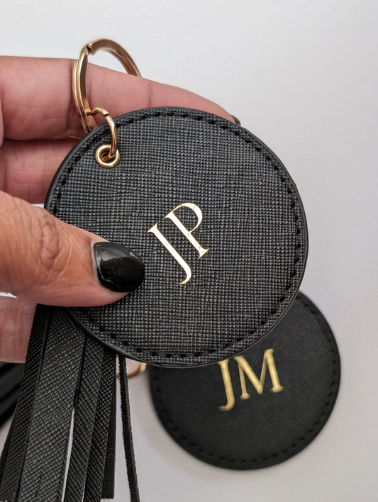 Monogrammed Leatherette keychain with tassel