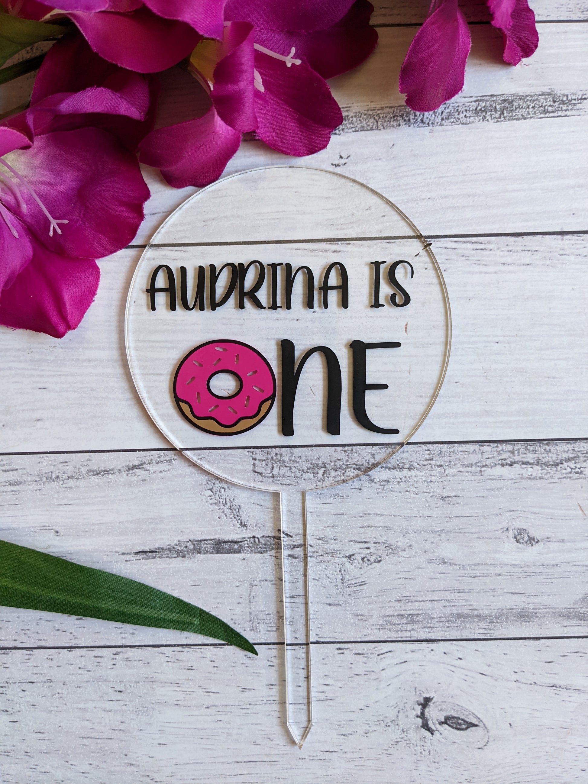 Who doesn't love donuts! Having a donut themed birthday party for your little one? We have designed a fun cake topper to sit on top of your donut themed cake.