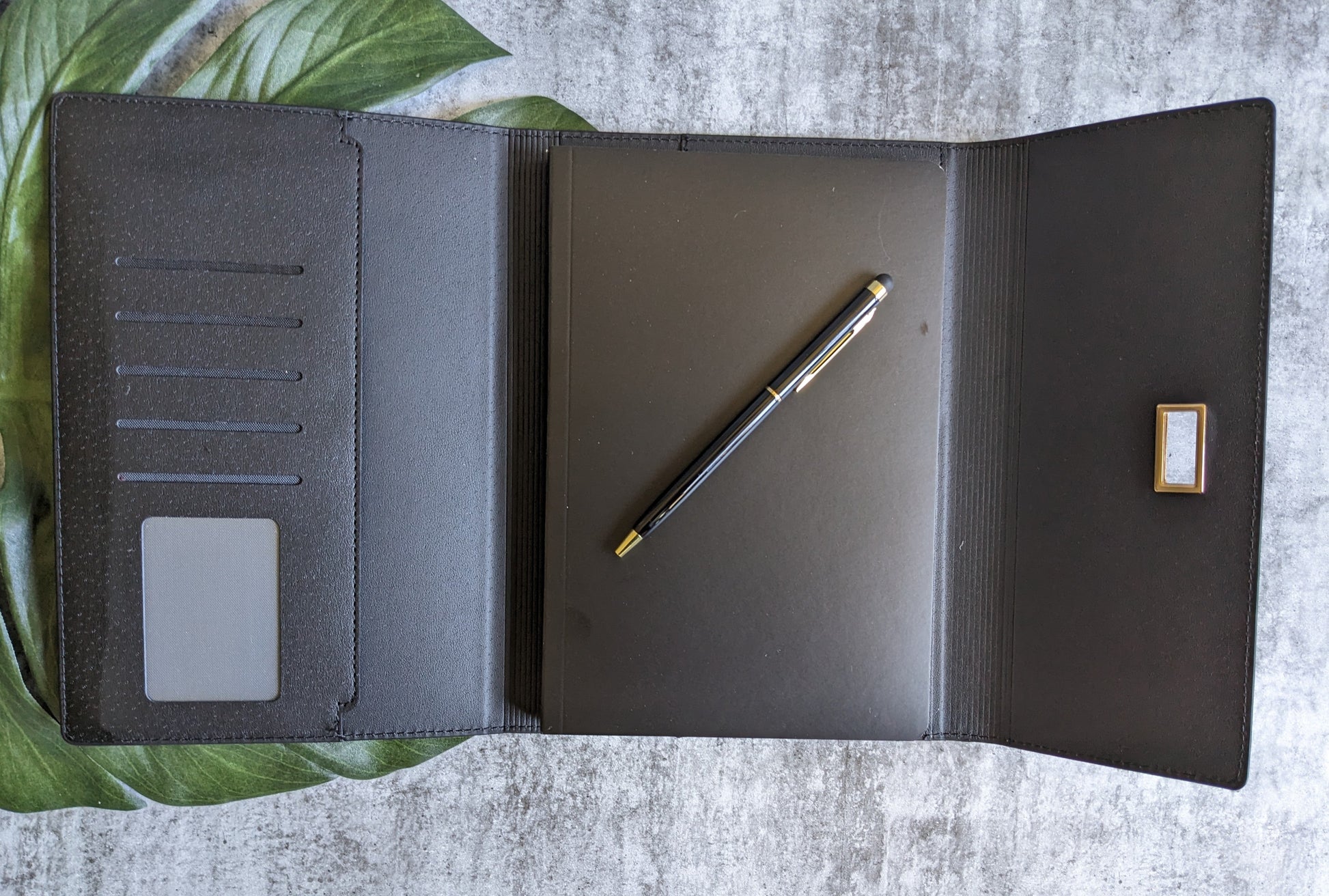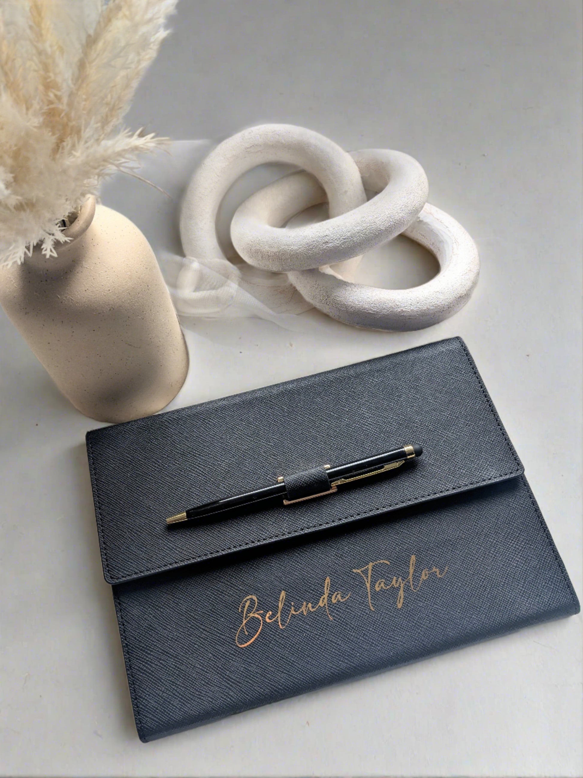 Crafted from premium PU leather, this sleek personalised notebook is both a chic desk accessory and a portable planner—measuring 17cm x 22cm, it slips easily into your handbag or backpack for on-the-go productivity.